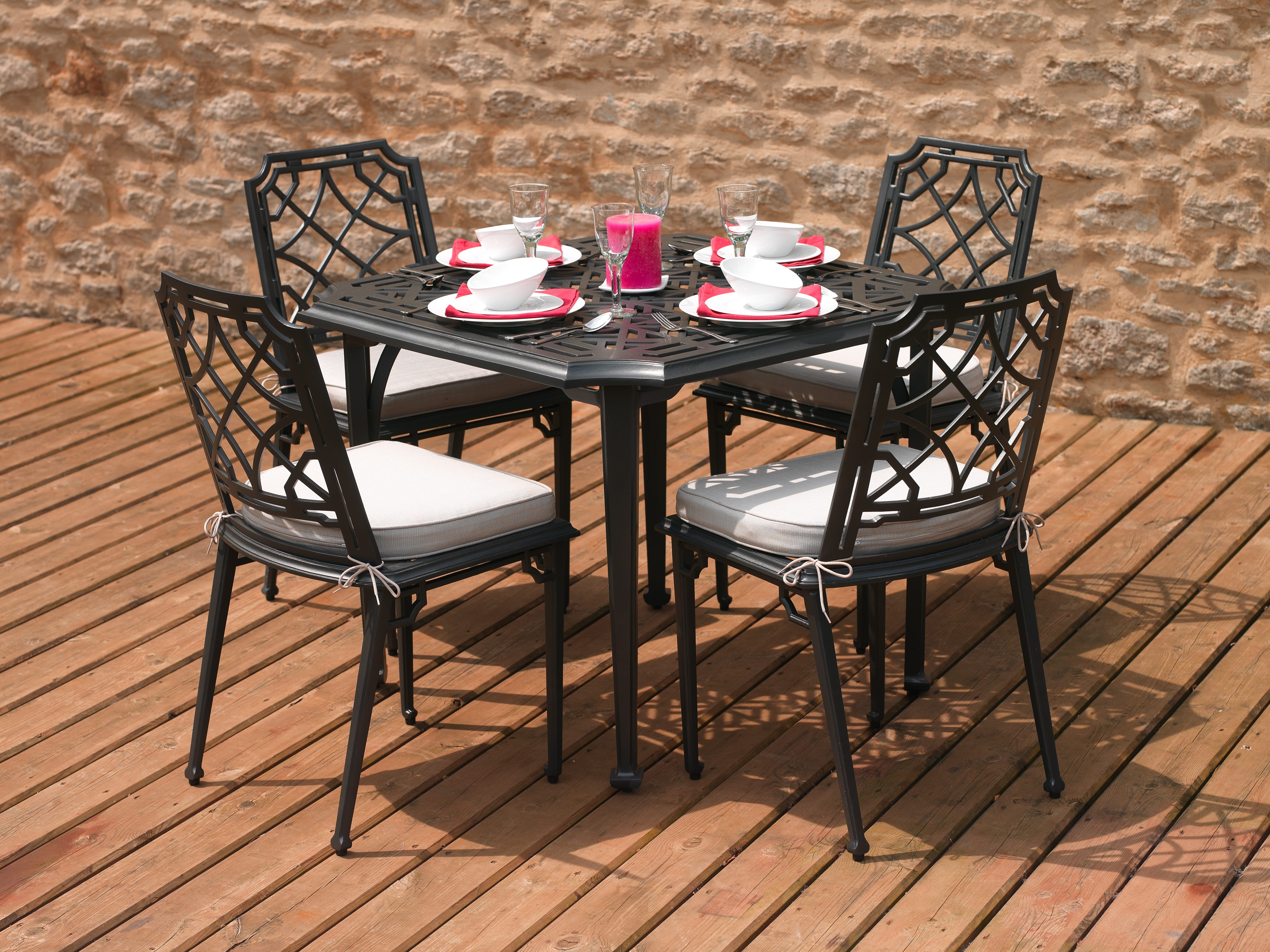 In our production process we use a great deal more aluminium than most outdoor furniture manufacturers. This means that Oxley’s furniture weighs more than standard aluminium outdoor furniture and is therefore not affected by high winds. We often get customers who live in windy locations choosing our furniture for this very reason. However, we ensure all our chairs are easily movable by one person.
